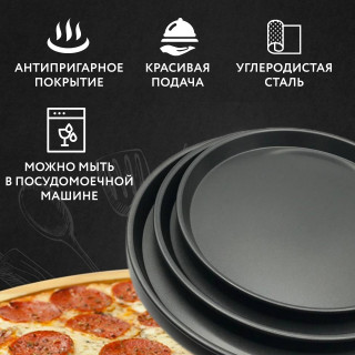 - Форма для выпечки пиццы с антипригарным покрытием, противень для духовки, цвет чёрный, диаметр 25 см.