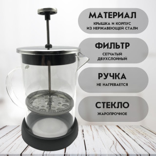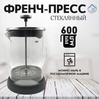 - Френч пресс, чайник заварочный стеклянный, заварник для кофе и чая, приготовления напитков из молотого кофе 600 мл.